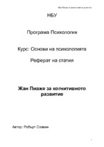 В книгата си „Педагогическа психология” Робърт Славин описва теорията на Жан Пиаже за когнитивното развитие. Пиаже е роден в Швейцария и най-известният детски психолог на ХХ век, който се отказва от докторската си степен...