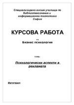 Темата е сварзана с бизнес психологията, -" психологически аспекти в рекламата"...