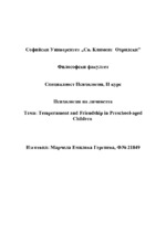 Три компонента на темперамента(ниво на активност, импулсивност и успокоение) оказват влияние върху приятелството между децата в предчилищна възраст....