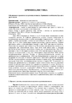 КРИМИНАЛИСТИКА 1.Възникване и развитие на криминалистиката. Принципи и особености. Връзки и други науки. Криминология – превенция на престъпността. Криминалистика - процесите от следите от престъпления. В Края на 19х век, 1890г става бум на...