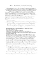 Организация, управление, мениджър Организацията това е група от хора, чиято дейност съзнателно се координира за постигане на обща цел....