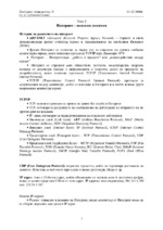 1. История на развитието на интернет 2. TCP/IP 3. UDP 4. IP адрес 5. Видове IP адреси 6. DNS 7. DNS сървъри 8. URL (Uniform Resource Locator) 9. Домейн 10. Основни TCP/IP приложни протоколи 11. POP 12. SMTP...