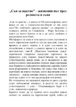 Сън за щастие – жизненият път през релноста и съня. "Сън за щастие" е цикъл от 94 стихотворения, като всяко от тях е самостоятелно...