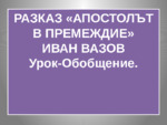 Урок-обобщение. Субкомпетенции на урока: умение за самостоятелно разсъждение върху разказа; да изразяват личното отношение към личността В. Левски; да правят сравнение, анализиране и изводи в разказа...