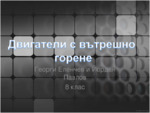 Двигател с вътрешно горене (ДВГ) е вид топлинен двигател, при който горивото се възпламенява и изгаря вътре в самия двигател. Получената от разширяването на горещите газове енергия се преобразува...