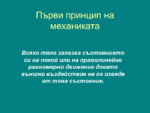 Всяко тяло запазва състоянието си на покой или на праволинейно равномерно движение, докато външно въздействие не го изведе от това състояние...