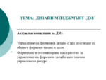 Актуална концепция за ДМ: Управление на фирмения дизайн с цел постигане на общите фирмени мисия и цели. Формиране и оптимизиране на стратегия за управление на фирмения дизайн като значим управленски ресурс...