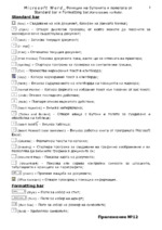Microsoft Word функции на бутоните и полетата от Standard bar и Formatting bar. Използване на Ruler.