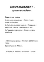 План конспект на уроок по волейбол. Специалност ФВС. 2ри курс....