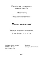 План-конспект на урок по математика за един учебен час за 4-ти клас. Тема - деление с 10, 20, 30, ..., 90...