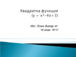 Квадратна функция е функция от вида, където а, b и c са реални числа, а 0. Числата а, b и c се наричат коефициенти (c – свободен член)...