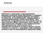 В презентацията е описана подробно структурата на клетката...