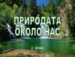 Презентация за урока "Природата около нас" от 2 клас. Запознаване на децата що е природа, видовете природа-жива и нежива, и връзката между човека и природата....