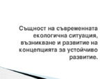 Същност на съвременната екологична ситуация, възникване и развитие на концепцията за устойчиво развитие