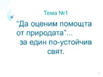 “Да оценим помощта от природата”... за един по-устойчив свят.