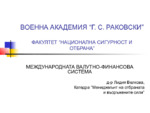 "Златен стандарт" или Парижка валутна система. Бретън-Уудска система на фиксираните валутни курсове. Ямайска система на плаващите валутни курсове...