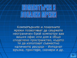 Компютърните и локалните мрежи позволяват да свържете неограничен брой компютри във вашия офис или дом в общо споделено пространство, където те да използват съвместно наличните ресурси - Интернет връзка, принтери, скенери и др...