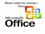 Презентацията е с цел показване на някои трикове, които могат да се използват с програмата на Microsoft Office - Word....