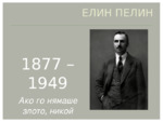 Елин Пелин се ражда под името Димитър Иванов Стоянов на 18 юли 1877г, в с. Байлово, Софийска област...