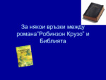 Прави се паралел между двете книги:Библията и "Робинзон Крузо"...