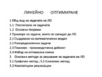 Общ вид на задачата на ЛО. Постановка на задачата. Основни теореми. Примери на задачи, които се свеждат до ЛО. Създаване на математически модел...