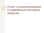Статута на военнослужещия в съвременното българско общество; основна цел: защитаване на статута на българския военнослужещ пред обществото...