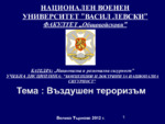 Този вид тероризъм е един от най-разпространените. Нарушават се нормите на международното въздушно право. С действията за незаконно завладяване или осъществяване на контрол над самолет, намиращ се в полет, се застрашава безопасността на лица, имущества...