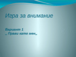 Правила. Избираме едно дете. (Мотивация). Детето показва, а останалите деца повтарят движението. Избираме наименование на всяко движение...