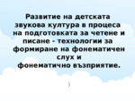 Развитие на детската звукова култура в процеса на подготовката за четене и писане - технологии за формиране на фонематичен слух и фонематично възприятие