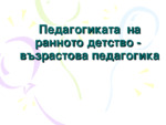 Педагогиката на ранното детство - възрастова педагогика