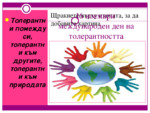 Толерантни помежду си, толерантни към другите, толерантни към природата