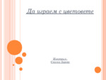 Презентация, която описва начина, по който можем да запознаем децата с цветовете. Начина, по който ако смесим два познати за децата цвята ще получим нов трети цвят и други...