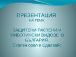Презентацията вкючва описание на представители на флората и фауната в България, които са под закрилата на Закона...