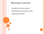 Mонетарната политика е едно от основните средства за макроикономическо регулиране. Чрез нея правителството и централната банка контролират предлагането, наличността и стойността на парите...