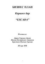 Караоке бар „Ескада” е разположен в централната част на град Добрич в близост до хотел България и читалище Йордан Йовков. Фирмата е стартираща и имайки предвид, че бизнесът е целогодишен дейостта ще започне на 01.02.2008 г...