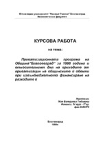 Приватизационната програма на Община”Благоевград” за 1998 година и относителният дял на приходите от приватизация на общинските й обекти при извънбюджетното финансиране на разходите й - курсова работа.