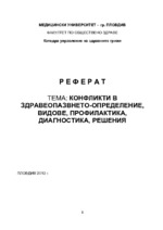 Конфликтите, възникнали в здравната организация се разглеждат като негативни явления. Съвременните теоретици в областта на управлението заключават, че пълното отсъствие на конфликт в една организация не само е невъзможно, но не е и желателно...