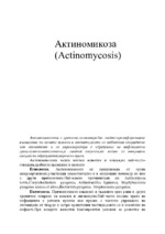 Актиномикозата е хронично,полимикробно гнойно-пролиферативно възпаление на меките тъкани и костите,което се наблюдава спорадично или ензоотично и се характеризира с образуване на инфекциозни грануломи-актиномикоми...