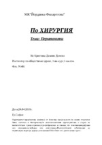 Перитонитът представлява комплекс от болестни процеси, които по своята етиология биват химични и бактериални; по патологоанатомна характеристика и стадии на възпалителния процес-сриозни,серо-фибринозни и гнойни; по локализация-дифузни или ограничени...