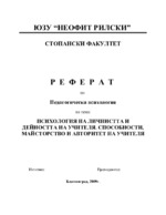 Психология на личността и дейността на учителя. Способности, майсторство и авторитет