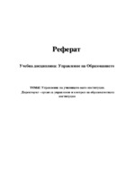 Управление на училището като институция. Директорът - орган за управление и контрол на образователната институция.