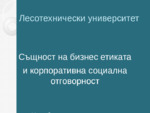 Същност на бизнес етиката и корпоративна социална отговорност