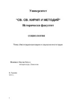Курсова работа - видове институции, социална институция и институционализация...