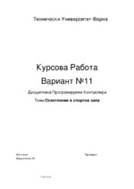 Целта на заданието е да се синтезира схемно решение с програмируем контролер който да управлява осветлението в дадена спортна зала...