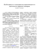 Статията е посветена на въпросите за съчетаването на стратегическото и тактическото фирмено планиране. Изясняват се възможностите за осъществяването на подобни управленски действия в съвременните условия...