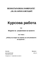 Избор на модел за оценка за изпълнението на проекта
