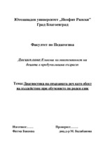 Диагностика на свързаната реч като обект на въздействие при обучението по роден език дава възможност да се установят онези нейни страни, които детето още не владее и не ползва свободно в общуването си, въпреки преднамерената ситуация...
