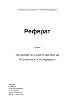 Реферат на тема "Отношението на детето към себе си и развитието на Аз-концепцията" предназначено за студенти Психология 1-ви курс...