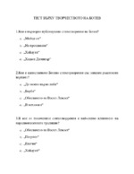 Тестът включва 11 въпроса с 4 възможни отговора от затворен тип, върху творчеството на Христо Ботев...