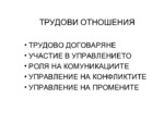 Трудов договор. Трудови взаимоотношения. Решаване на индивидуални трудови спорове....